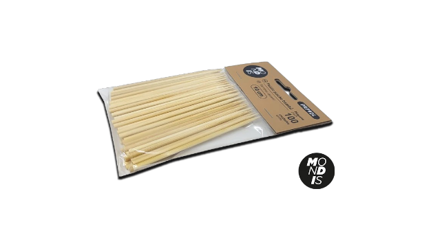 Palillo para pincho de madera de 10 cms de bambú. Caja de 20 paquetes de 100 pinchos.